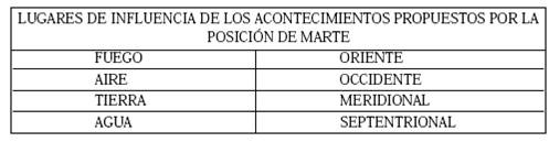 Pero observemos la presencia de Saturno y Marte en Casa X si nos atenemos a lo que designan estos planetas podemos decir que Marte será de gran importancia en el año diciéndonos su posición, los mayores conflictos estarán en oriente del territorio español (véase tabla ), y que dado el alto compromiso con el nacionalismo que tienen estos planetas por afinidad ideológica que los representa (Saturno Marte ver en post anterior).