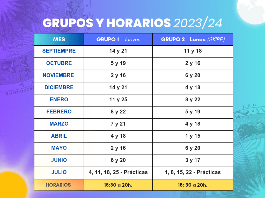 🌟 ¡CLASES DE ASTROLOGÍA PRESENCIAL Y VIRTUAL 2023 /24! ✨ Anunciamos el inicio de las clases de astrología para el curso 2023-2024. 🌌📚