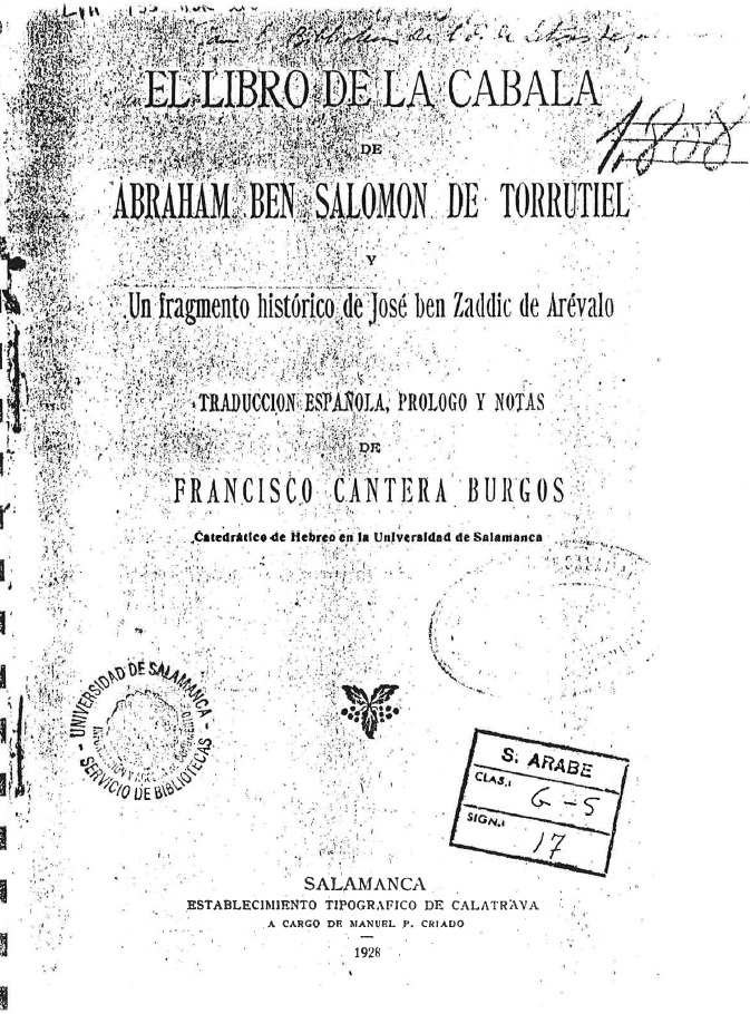 El libro de la Cábala de Abraham ben Salomón de Torrutiel y un fragmento histórico de José Ben Zaddic de Arévalo