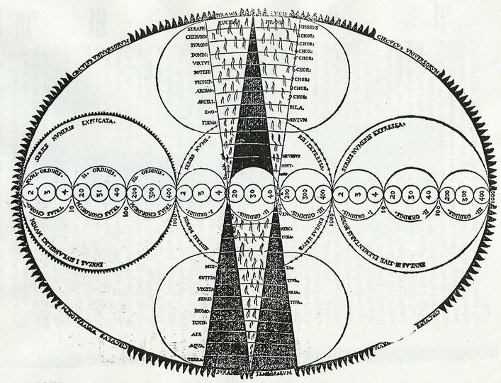 Flud nos desgrana de forma racional estos postulados que son observables y los incorpora a los tres planos básicos en los que el hombre y la naturaleza, parece componerse.