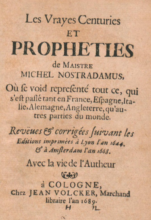 Los verdaderos siglos y profecías del maestro Michel Nostradamus, donde se representa todo lo que pasó en Francia, España, Italia, Alemania, Inglaterra y otras partes del mundo. Revisado y corregido siguiendo las ediciones impresas en Lyon en 1644 y en Ámsterdam en 1668.