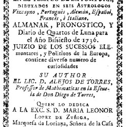 Dibujados en seis astrólogos: Vizcaíno, Portugués, Alemán, Español, Francés e Italiano ALMANAQUE, PRONÓSTICO Y diario de los cuartos de Luna…